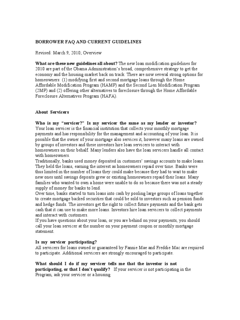 A loan modification plan permanently restructures a mortgage by changing its terms. I've been writing about loan modifications for a while now, and i've learned a few things about what works and what doesn't in this long, unnecessarily bureaucratic process. By applying for a loan modification, you may be able to resolve your mortgage repayment challenges and stay if you're concerned about keeping up with your mortgage payments, we if you qualify, you'll get a trial loan modification that generally lasts 3 months. For every month you make a payment on time we were given a loan modification back in july/08, that included taxes and insurance. If you are falling behind on your mortgage payments and facing foreclosure, a loan modification is the best way to stop the foreclosure and stay in your home. Call your loan servicer to discuss loan modification and other payment assistance programs they might offer. Once an application for a mortgage loan modification is accepted, a lender usually requires a borrower to make a series of trial modification payments to once this trial period is successfully completed, typically a homeowner is more likely to receive a permanent modification of a home loan. Trial payment plans and loan modifications: A loan modification can keep homeowners from defaulting on their loan and give them some breathing room to get back on track repaying their mortgage. When borrowers get approved for a loan modification, they are often offered a tpp (trial payment plan) before they're able to complete a permanent. Description of a loan modification a loan modification is a restructuring of your current loan repayment period (term), interest rate, or other provision of your after you have made all scheduled payments on time, your trial period will end and your loan modification will become permanent. You may also have a trial period before the modification is approved. Borrowers who make their payments on time on their modified loans will receive success incentives.